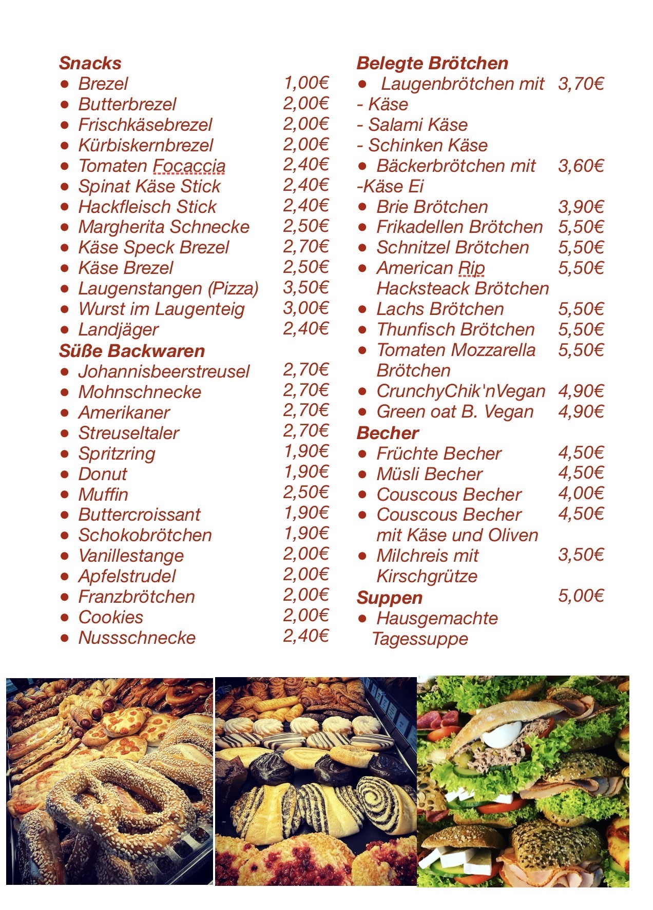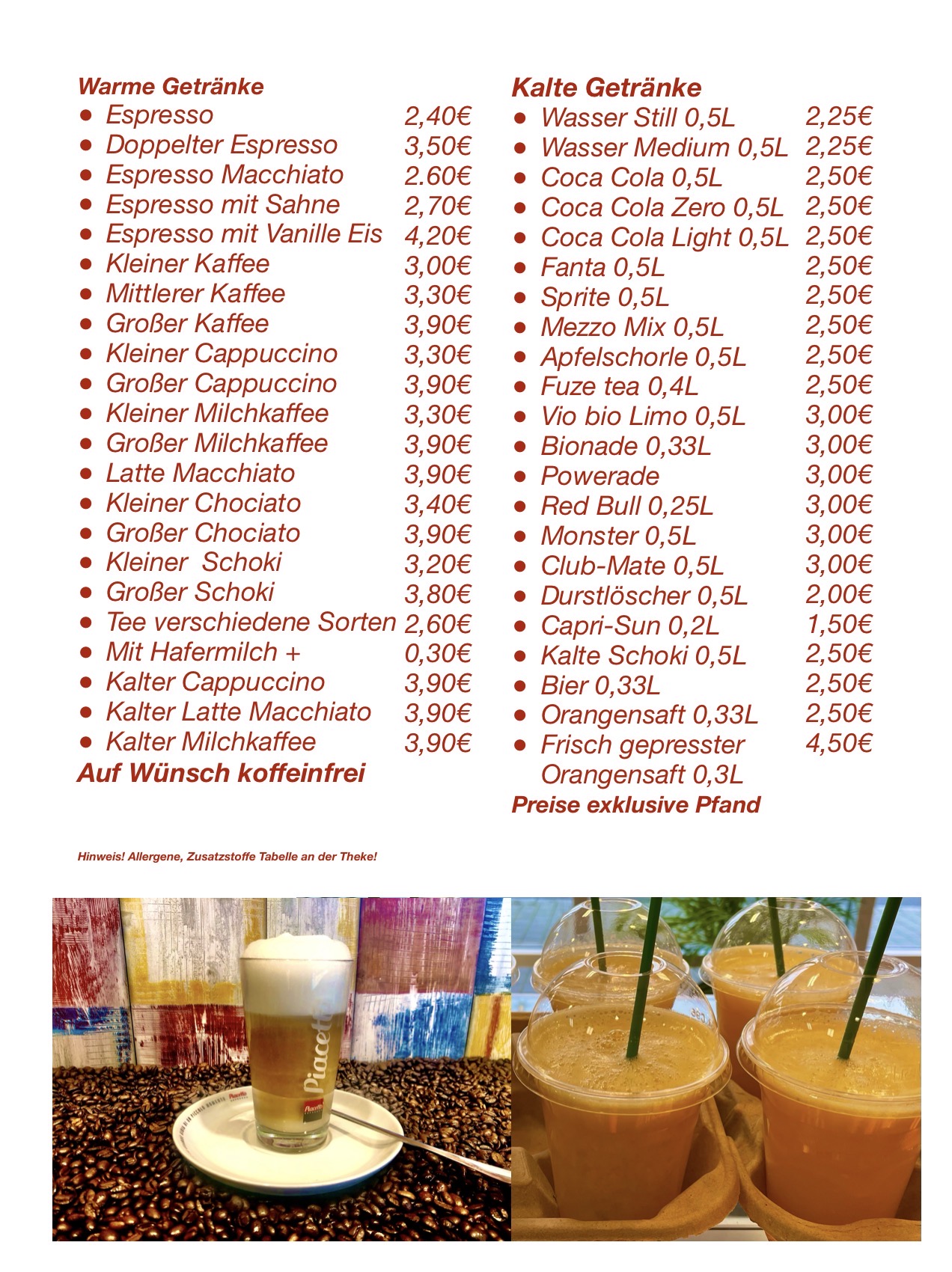 Alle Speisen und Getränke zum mitnehmen geeignet.